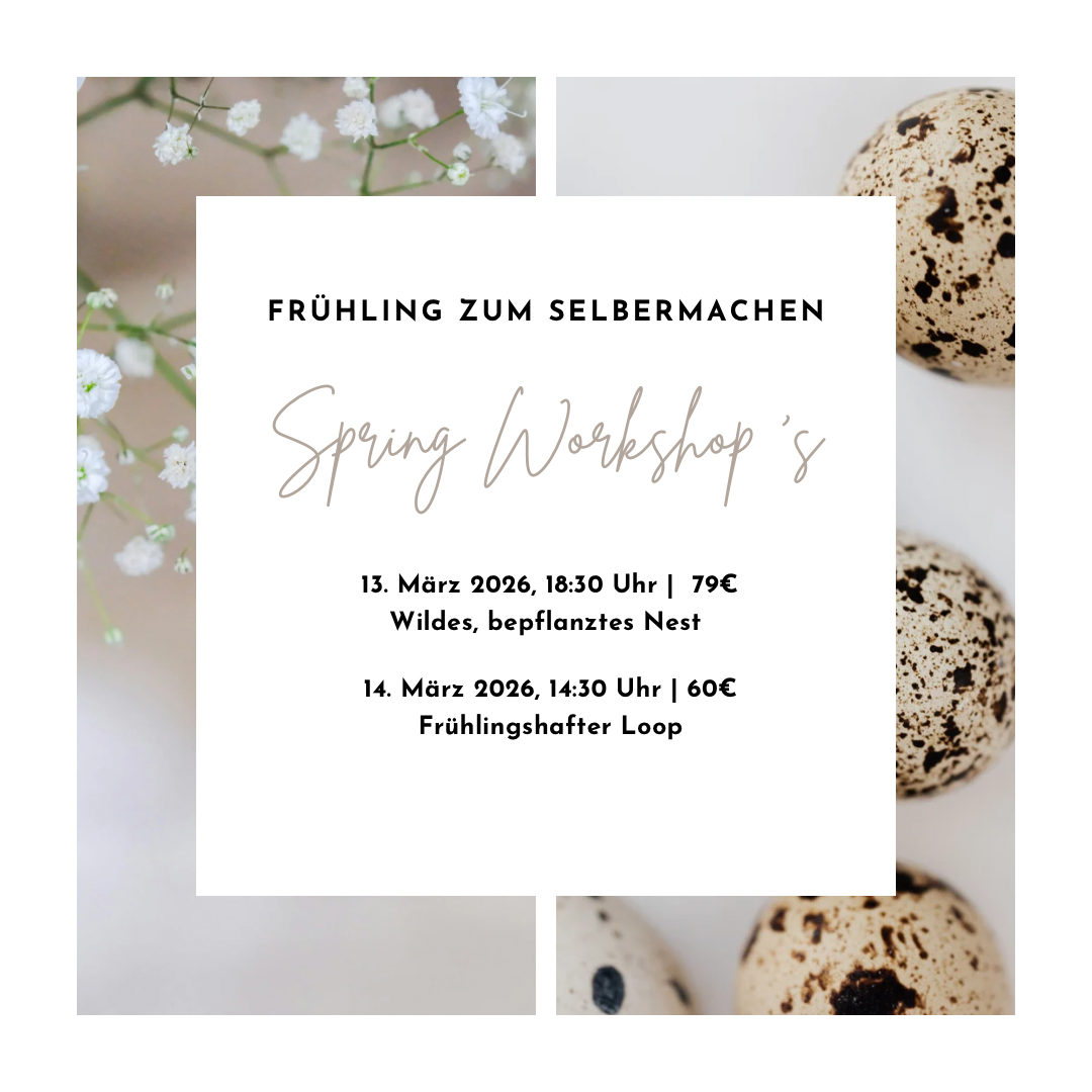 Der Frühling ist die perfekte Zeit, um Neues zu entdecken und kreative Energie zu entfalten. In meinem Frühlingsworkshop erwarten dich inspirierende Impulse um dein eigenes Werkstück zu erschaffen. Hier findest du Raum, um dich auszuprobieren und deine Kreativität zum Blühen zu bringen.