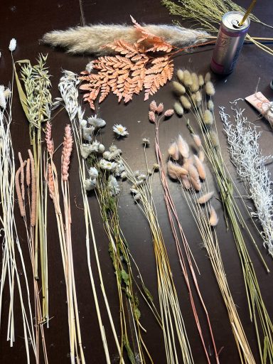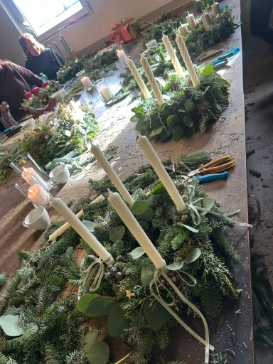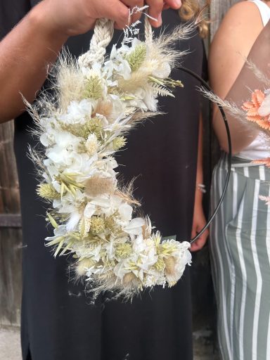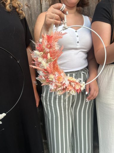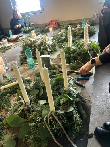 Themen könnten z.B. sein: Kopfkränze, Trockenblumenloops/ kränze, jahreszeitliche Themen wie Adventskranz.